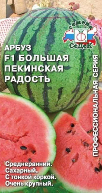 Среднеранний (от всходов до созревания плодов 80-85 дней) гибрид для открытого грунта и пленочных укрытий. Растение среднерослое. Плод округлый, крупный, массой от 8-12 до 16 кг, кора тонкая и прочная, зеленая с черно-зелеными полосками. Мякоть ярко-красная, зернистая, очень сладкая, сахаристость более 12%. Урожайность с растения 24-32 кг. Ценность гибрида: устойчивость к комплексу болезней, крупноплодность, высокие вкусовые и товарные качества, транспортабельность, сохраняет товарные качества при хранении. Назначение универсальное.
